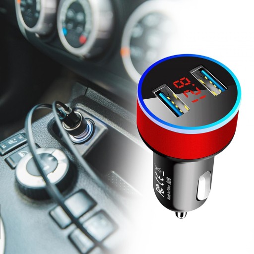 Ładowarka samochodowa z dwoma portami napięciowymi do smartfonów Kamery MP3 Czerwona
