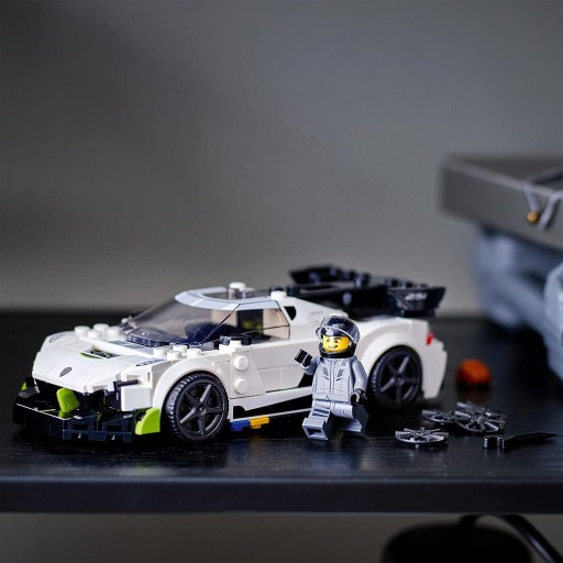 Replika auta Koenigsegg Jesko ma ok. 4 cm wysokości, 15 cm długości i 7 cm szerokości, a jej szerokie podwozie z ośmioma wypustkami sprawia, że mieszczą się w niej dwie minifigurki i autentyczne detale.