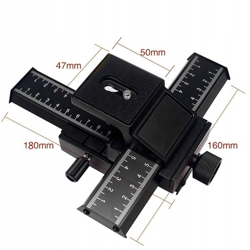 4-kierunkową szynę ślizgową ogniskowania makro można regulować w czterech kierunkach za pomocą dwóch 6-calowych szyn: do przodu, do tyłu, w lewo i w prawo. (Prosimy o dokręcenie pokręteł po dokonaniu regulacji, aby aparat nie poruszał się lekko po ustawieniu)