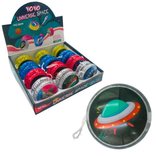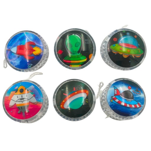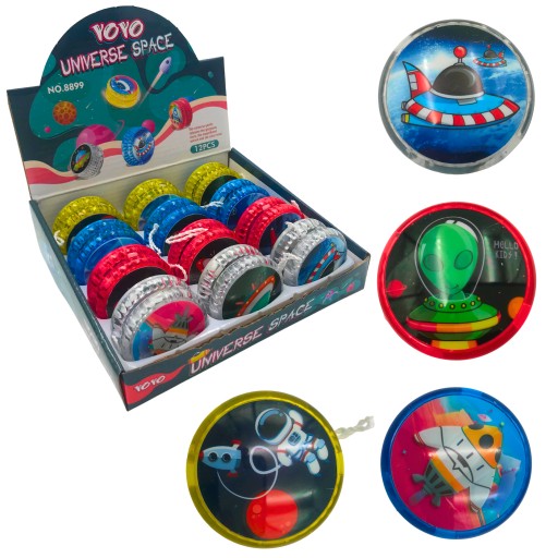 ✴️ Zostało wykonane z transparentnego tworzywa, wraz z naklejkami w motywie KOSMOS - różne obrazki po dwóch stronach. Jest wyposażone w efekt świetlny, który się uruchamia, gdy Yoyo się kręci.