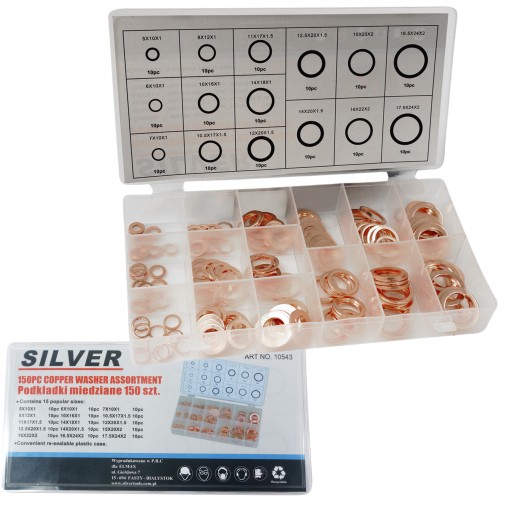 НАБОР МЕДНЫХ ШАЙБ СЕРЕБРЯНЫХ МЕДНЫХ ШАЙБ 150 ШТ. SORTER S10543