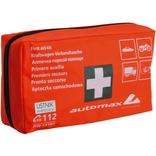 Wysokiej jakości samochodowy zestaw pierwszej pomocy - apteczka spełniająca wymagania Unii Europejskiej wg normy DIN 13164.