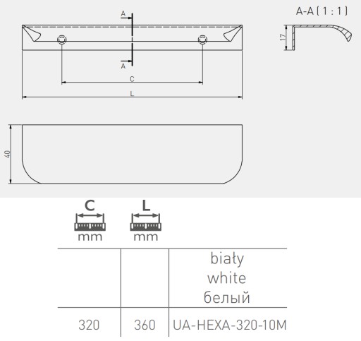 - uchwyt krawędziowy HEXA 320 mm