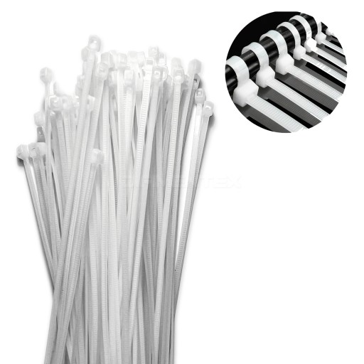 Opaska zaciskowa 300x7,5 mm nylonowa w kolorze białym jest pakowana po 100 sztuk, co sprawia, że masz zapas zawsze pod ręką.