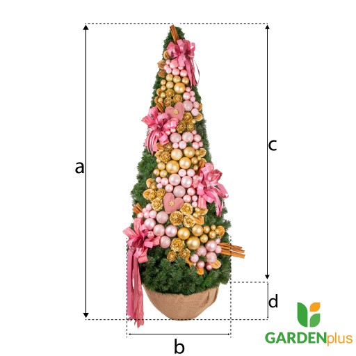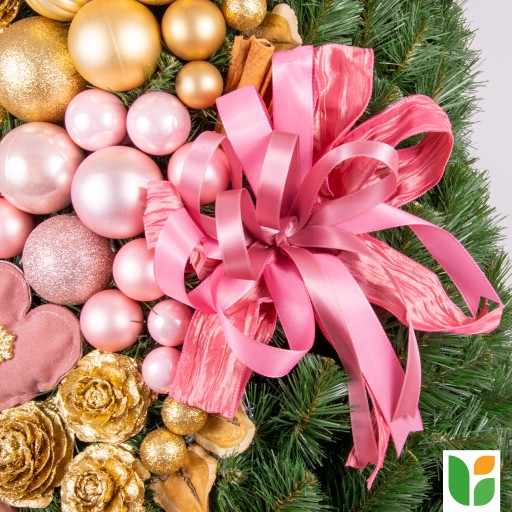 Z dumą prezentujemy Państwu naszą Królewską Choinkę — SWEET, wyjątkową dekorację na Boże Narodzenie. Ten symbol elegancji i jakości, w 100% ręcznie wykonany w Polsce, wyróżnia się zielonym, niepalnym igliwiem i bogatymi ozdobami. Nasze choinki są zdobione jednostronnie, co umożliwia swobodne ustawienie i dopasowanie do każdego pomieszczenia. Nasza choinka, składająca się między innymi z lasek cynamonu, kokard oraz złotych i różowych dekoracji, jest prawdziwym dziełem sztuki.