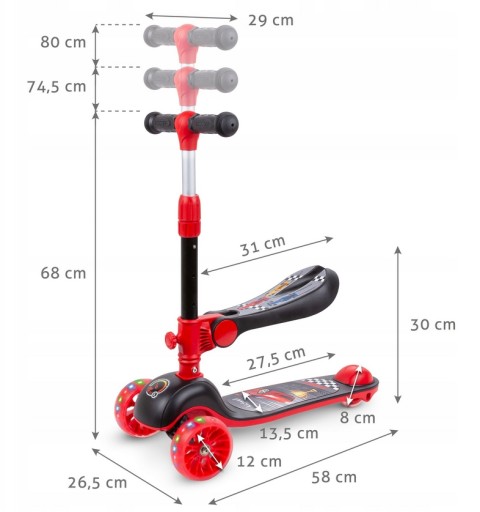 - przedział wiekowy: dla jeździka 18 miesięcy; dla hulajnogi 3+