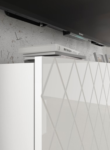 Diuna to elegancka kolekcja do salonu, którą cechuje wysoka jakość i luksusowy wygląd. Mebel posiada efektownie zdobione fronty w wysokim połysku. Nowoczesny design został uzupełniony o klasyczną kolorystykę, co zapewnia duże możliwości aranżacyjne. Mebel został osadzony jest na stylowych nóżkach, które poza walorami wizualnymi, gwarantują stabilność.