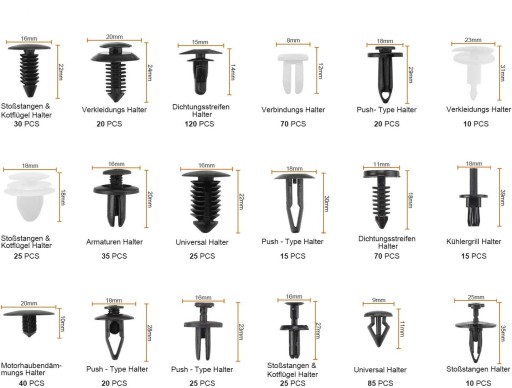 SPINKA KOŁEK KOŁKI MOCOWANIE 660 SZT ZESTAW NARZĘDZIA DO DEMONTAŻU