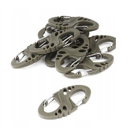 Doskonałe do podczepiania części oporządzenia i wyposażenia. Idealne do zaczepiania rękawic, kluczy, latarki lub noża. Karabinki umożliwiają mocowanie na D-ringach, szlufkach czy pętelkach.