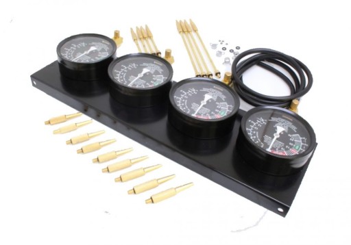 Czterozegarowy zestaw do synchronizacji gaźników dla idealnej pracy silnika w samochodach i motocyklach.