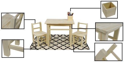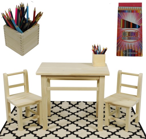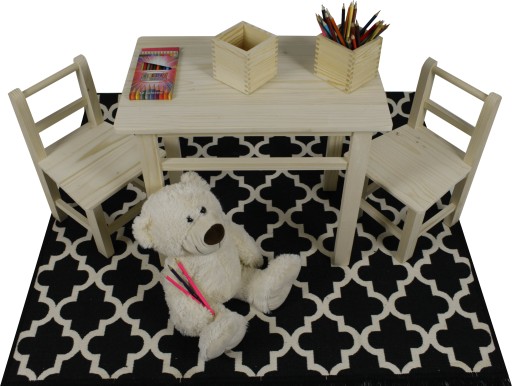 ZESTAW STÓŁ STOLIK I KRZESEŁKA DLA DZIECI Z DREWNA Długość stołu 56 cm