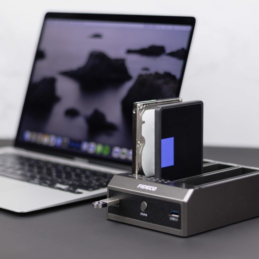 Model YPZ08S3 od Fideco to stacja dokująca dla trzech dysków HDD i SSD z możliwością klonowania offline oraz dwoma portami USB-A.