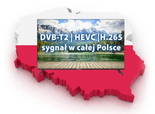 Zapomnij o dodatkowych dekoderach, nasz telewizor wyposażony jest w odbiornik najnowszego sygnału telewizyjnego DVB-T2 h.265/HEVC, zapewniający dostęp do dziesiątek bezpłatnych kanałów naziemnej telewizji cyfrowej odbieranych bezpośrednio z anteny. Cyfrowy standard oferuje obraz pozbawiony zakłóceń, abyś mógł bez przeszkód oglądać swoje ulubione kanały telewizyjne.