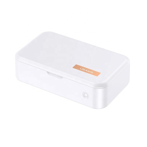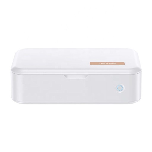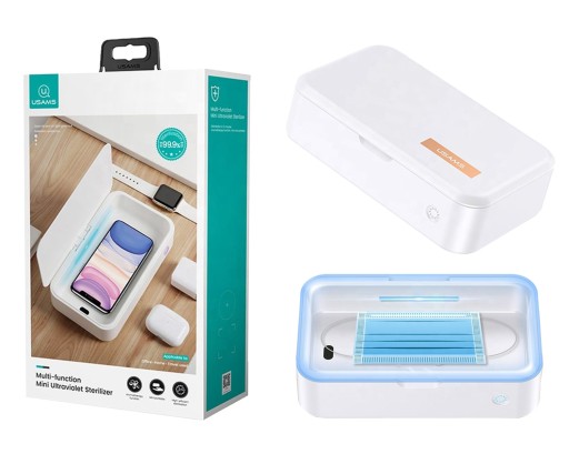 Usams US-ZB138 wielofunkcyjny, mini sterylizator UV z funkcją bezprzewodowego ładowania smartfonów.