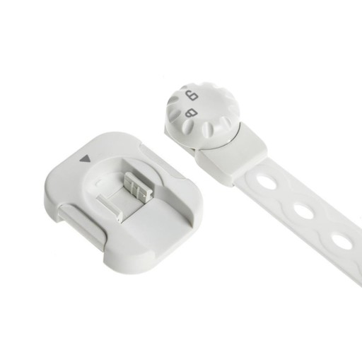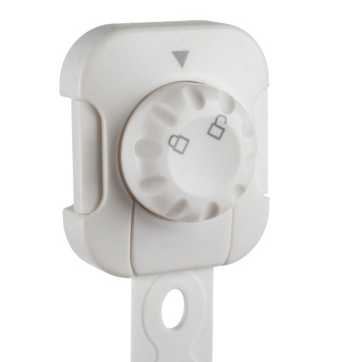 - MOŻLIWOŚĆ DOCIĘCIA NA WYMIAR – zabezpieczenia mają regulowaną długość, co pozwala na dostosowanie ich do różnych rozmiarów zabezpieczanych szafek. Wystarczy otworzyć zabezpieczenie, odciąć nadmiar zabezpieczenia, a resztę przymocować i zamknąć blokadę.