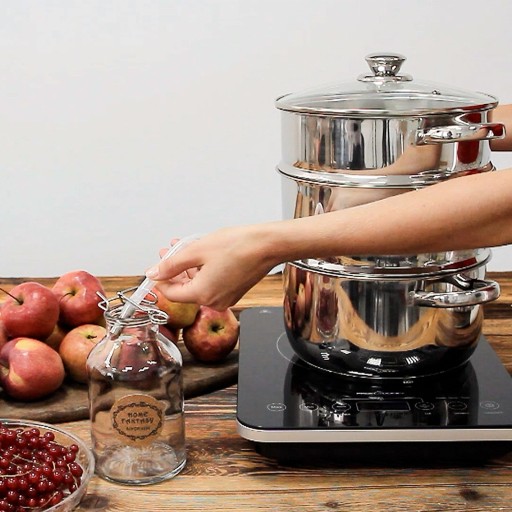 Sokownik zbudowany jest z wysokiej jakości stali nierdzewnej odpornej na wysoką temperaturę, można go użytkować na wszystkich typach kuchenek - również indukcyjnych. Możliwe jest również mycie go w zmywarce. Do mycia elementów sokownika należy używać dostępnych środków do mycia naczyń, unikając jednak ostrych szczoteczek, gąbek lub proszków mogących porysować naczynia.
