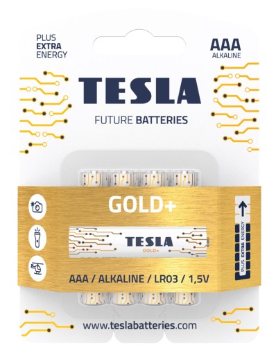 Seria TESLA GOLD+ jest naszą najwyższą klasą baterii alkalicznych, które zostały specjalnie skonstruowane do bardzo energochłonnych urządzeń, na przykład aparatów fotograficznych i ich lamp błyskowych. Ta seria zapewnia najwyższą wydajność przez długi czas.