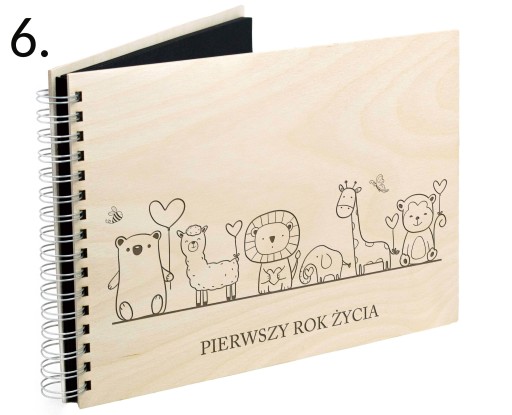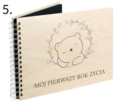 Pierwszy rok życia dziecka zamknięty w drewnianym albumie.