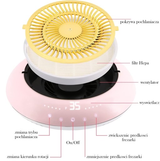 ❤️Wbudowany w urządzenie pochłaniacz pyłu usuwa pył z paznokci powstały podczas zabiegu manicure, dzięki czemu eliminuje w znacznym stopniu narażenie na wdychanie szkodliwych drobinek. Pochłaniacz posiada wewnątrz specjalny filtr HEPA, który wchłania pył i zabezpiecza, aby nie wydostał się na zewnątrz. Cichy bardzo mocny.