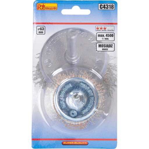 Szczotka druciana doczołowa o średnicy 63 mm do wiertarki.