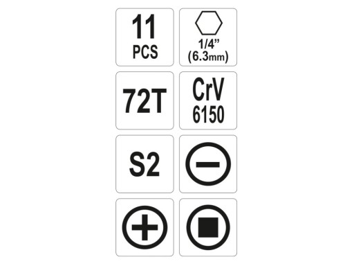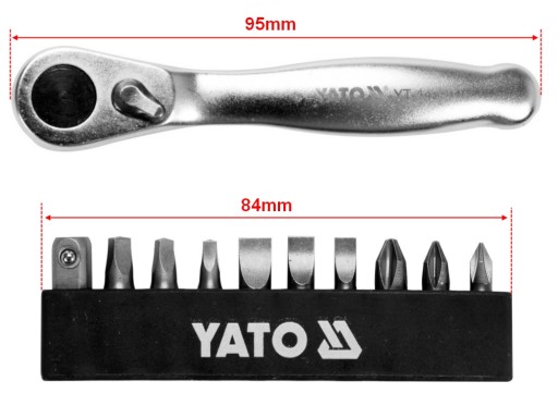 Zestaw bitów z grzechotką YATO YT-14390 małe wymiary 1/4" 11 częsci Cr-V