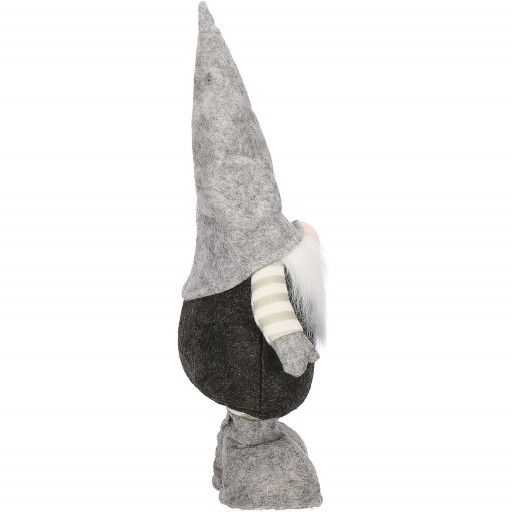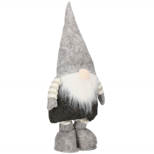 Pani skrzat ma białe, gęste warkoczę a Pan skrzat długą, białą brodę. Na głowie oba gnomy mają wysokie czapki. Ubrane zostały w szaro-grafitowy strój z pasiastymi wstawkami na rączkach i nóżkach. Dodatkowo ubranko Pani skrzat zostało ozdobione uroczymi białymi guziczkami pośrodku. Dekoracje zachwycają pod względem jakości materiału i precyzji z jaką zostały wykonane a jednoczenie rozbawiają.