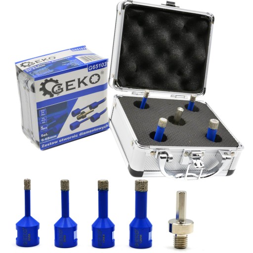 Zestaw otwornic diamentowych w rozmiarach od 6 do 12 mm. Wyposażona w gwint montażowy M14 do mocowania w szlifierkach kątowych. Idealne do wykonywania otworów w materiałach takich jak: gres, płytki ceramiczne, klinkier, glazura oraz kamień naturalny.