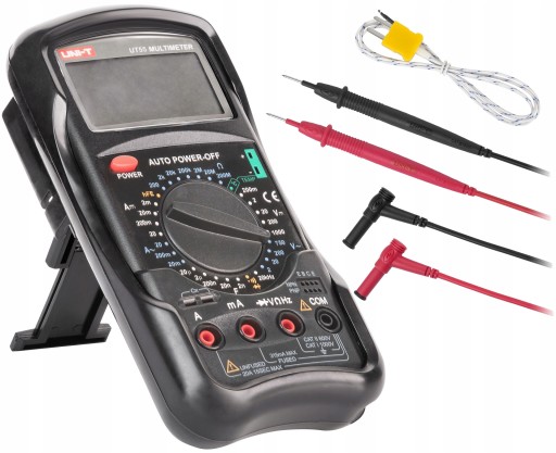Rezystancja: 200 Ohm; ±(0,8%+3) / 2 kOhm / 20 kOhm / 200 kOhm / 2 MOhm; ±(0,8%+1) / 20 MOhm; ±(1%+2) / 200 MOhm; ±(5%+10)
