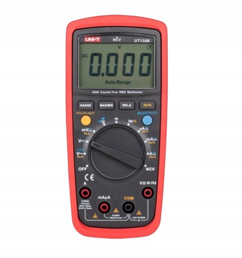 Natężenie prądu zmiennego AC: 400 µA/4000 µA/40 mA/400 mA/4 A/10 A; ±(1%+3)