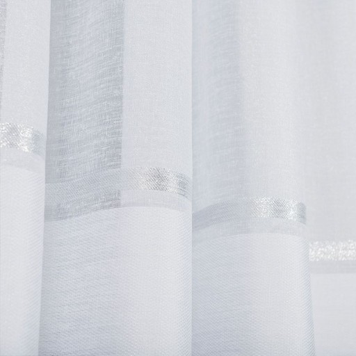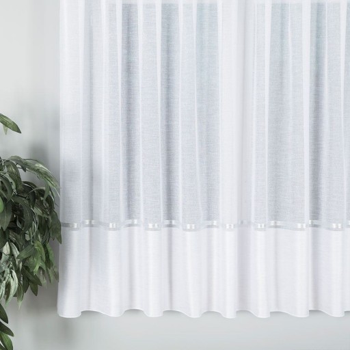 Przedmiotem sprzedaży jest nowoczesna lekko nabłyszczana firana z wysokiej jakości tkaniny typu len batystopodobny ze srebrnym pasem -Nowość!