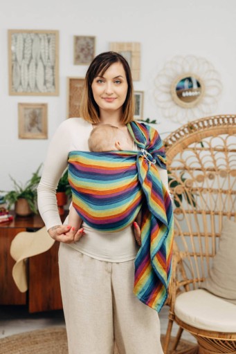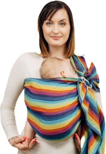 Chusta kółkowa LennyLamb to szybkie, proste w użyciu i zajmujące niewiele miejsca nosidełko dla dziecka. Nie wymaga skomplikowanego wiązania chusty! Wystarczy dobrze przełożyć chustę do noszenia dziecka przez kółka, dopasować rozmiar do osoby noszącej włożyć dziecko i dociągnąć (według wskazówek w instrukcji). To niezbędny element wyprawki noworodka!