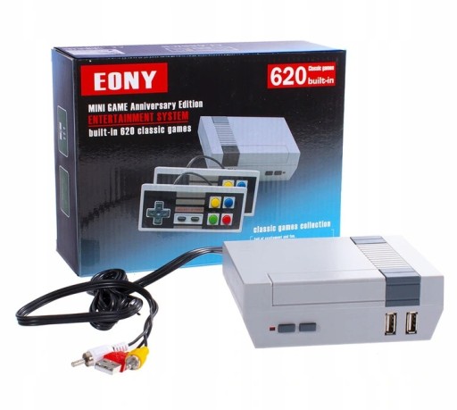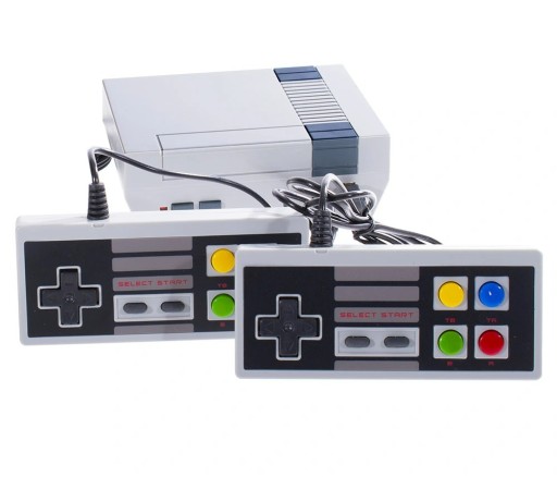 W zestawie znajdziecie konsolę do gier + 2 pady oraz zestaw oldschoolowych gier zapisanych w pamięci konsoli. Przypomnij sobie najlepsze czasy gier video lat 80-90.