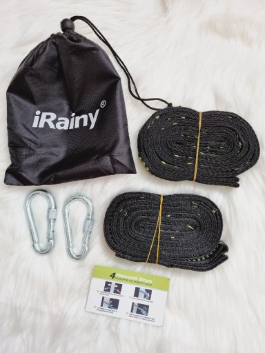 Pasy do hamaków iRainy, 10 stóp (3 metry) do zawieszania pasów do hamaków (2szt.) z 2 karabińczykami o dużej wytrzymałości, pasuje do wszystkich hamaków