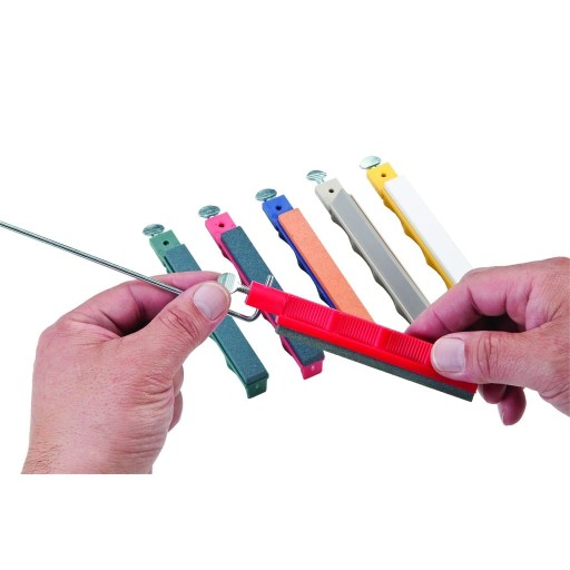 Profesjonalny, a zarazem łatwy w użyciu zestaw do ostrzenia z pięcioma rodzajami kamieni ceramicznych o różnej gradacji. Ostrzałka została zaprojektowana na taką, by zapewnić wygodę prawo i leworęcznym użytkownikom. W komplecie oprócz kamieni znajduje się 5 prowadnic, zacisk, olejek oraz bardzo wygodne pudełko, w którym można przenosić cały zestaw.