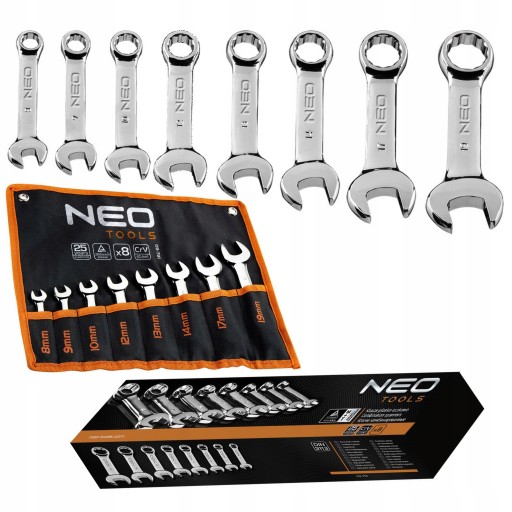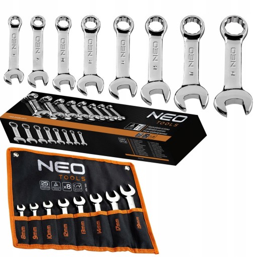 НАБОР НАКИДНЫХ КЛЮЧЕЙ NEO 8-19 ММ, КОРОТКИЕ, 8 ШТ. + ФОРМАТ-ПЛАСТИНА