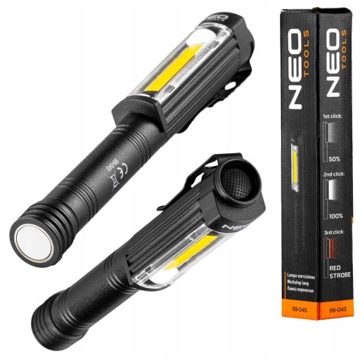 Kompaktowa lampa inspekcyjnao mocy 4W i silnym strumieniu świetlnym 400 lumenów wyposażonajest w wysokiej klasy diodyLED COB. Lampa posiada 3 funkcje świecenia: 100%, 50% oraz światło stroboskopowe. Magnes w podstawie pozwala na stabilne ustawienie produktu na powierzchniach metalowych. Zgodność z europejskimi standardami bezpieczeństwa potwierdza certyfikat CE.