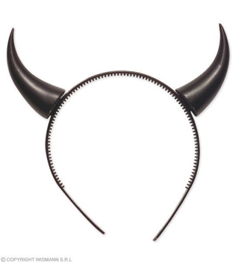 Opaska wykonana z solidnego tworzywa sztucznego. Elastyczna i lekka, nie uciska głowy. Model przeznaczony dla dzieci. Opaska od środka ma grzebyk dzięki czemu nie zsuwa się z głowy. Do opaski przyczepione dwa duże rogi. Rogi wykonane z czarnego plastiku. Może służyć do zabawy lub jako uzupełnienie stroju. Opaska jest zabawnym gadżetem na każdą imprezę: karnawał, urodziny, sylwester.