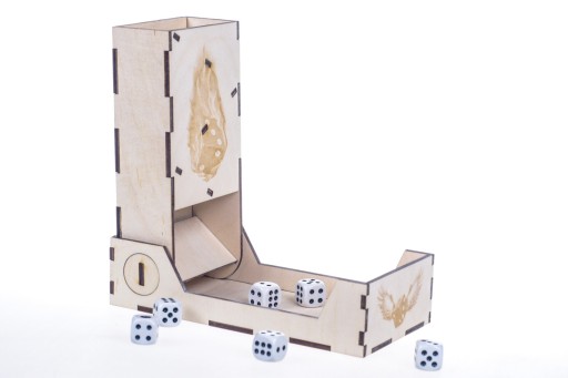 Ta wieża kości została wykonana z trwałej i lekkiej sklejki o grubości 3 mm. Sklejka to popularny materiał wśród twórców gier planszowych ze względu na swoją wytrzymałość i łatwość obróbki. Dzięki zastosowaniu sklejki, wieża jest wytrzymała i długo się zachowuje.