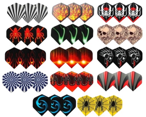 ✅ WIELE MOŻLIWOŚCI DZIĘKI WYMIENNYM PIÓRKOM: Zestaw zawiera 42 różne piórka w 15 wzorach, umożliwiając dostosowanie rzutek do własnego stylu i preferencji.