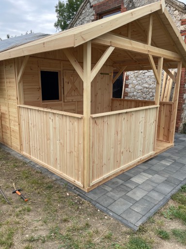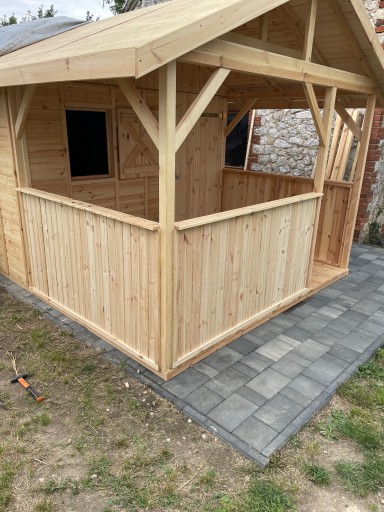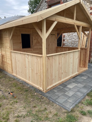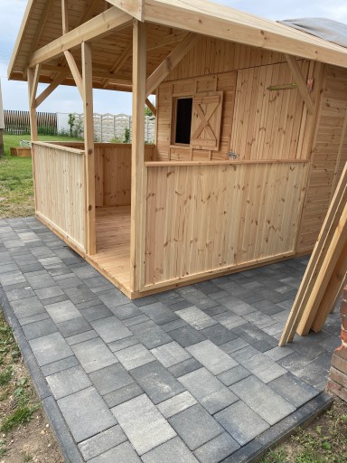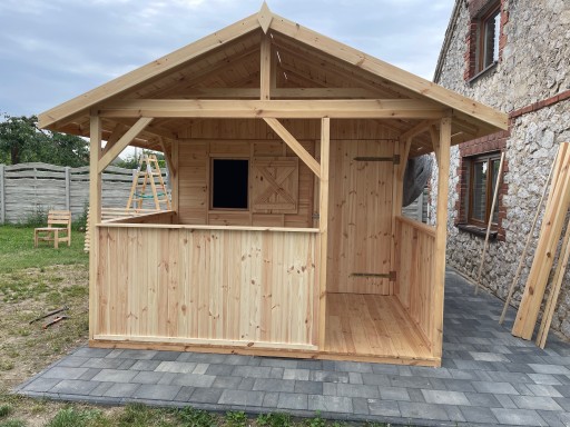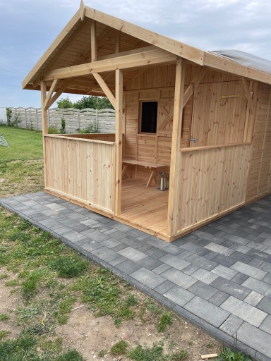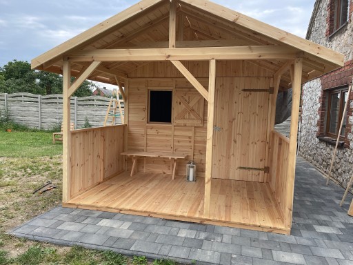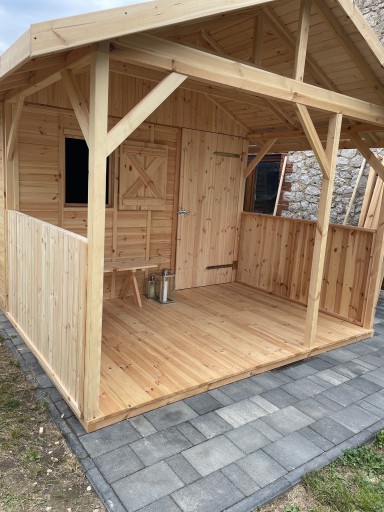 Domek letniskowy o podstawie 6x4m. Dach dwuspadowy. Powierzchnia do zamieszkania 4x4 m, taras 2x4m . lub w wersji domek o podstawie 6x4m, powierzchnia do zamieszkania 3x4m, tars 3x4m Deski ścian łączone metodą na pióro i wpust. Konstrukcja domku umożliwia klientowi samodzielne ocieplenie od wewnątrz dzięki konstrukcji szkielowej domku. Konstrukcja umożliwia samodzielny montaż ( gotowe moduły)