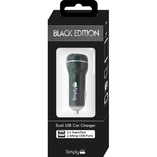 SIMPLY BLACK EDITION DUAL USB CAR CHARGER 2X SUPERFAST 2,4A USB PORTS 4,8A BLAC 01
