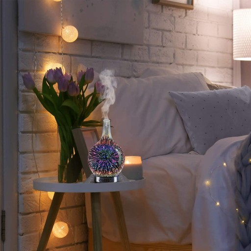 Dyfuzor 3D do aromaterapii, ultradźwiekowy, SZKLANY, zmieniajacy barwę, funkcja lampki nocnej - SPIRIT Mandala
