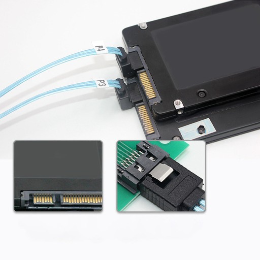 1. Kabel danych 6 SATA do 6 SATA: Podłącz dysk SSD SDD do wewnętrznego interfejsu mini SAS HD płyty głównej za pomocą kabla danych 6 SATA do 6 SATA. Interfejs jest spójny, klamra nie jest łatwa do poluzowania, a transmisja jest bardziej stabilna.