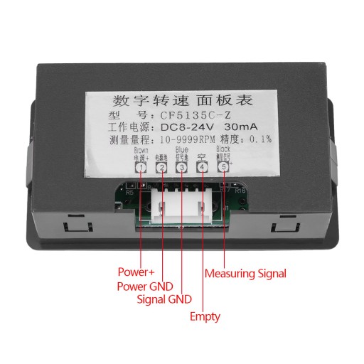 Zasilanie robocze: DC8-24V, 30mA, zakres pomiarowy: 10-9999RPM