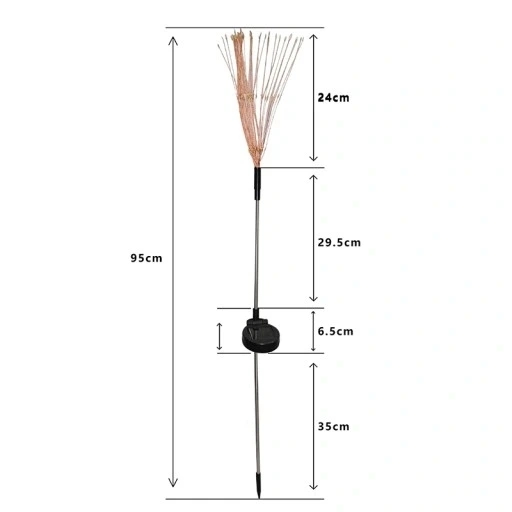 IP65 waterproof rating, the light pole is made of high-quality stainless steel and high-quality plastic, can withstand all kinds of weather, including heavy rain and snow, without worrying about rust and fading. Outdoor decoration and high-quality solar LED firework lights flash bright, durable, environmentally friendly, reliable, and corrosion-resistant.