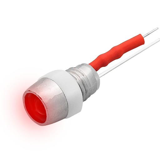 Kontrolka z matową diodą LED o czerwonej barwie światła wraz z przewodem.