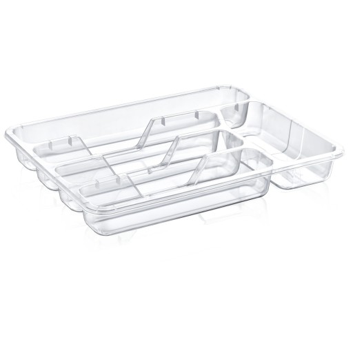 Przedmiot aukcji stanowi wkład do szuflad na sztućce. Organizer zapewnia dobrze podzieloną przestrzeń do przechowywania sztućców oraz innych akcesoriów kuchennych. Wyprodukowany z tworzywa sztucznego o parametrach uznawanych za najbezpieczniejsze - polipropylenu - dedykowanemu szczególnie do kontaktu z żywnością. Produkt nadaje się do zmywania w zmywarce.