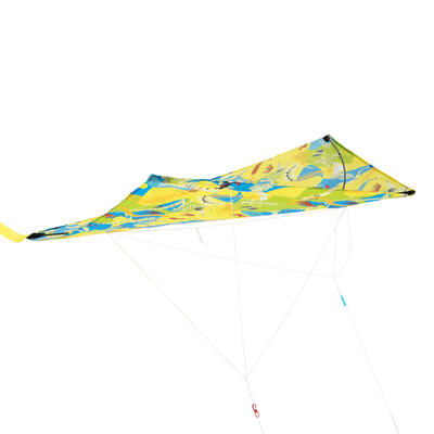 System żyłek umożliwiających przypięcie linek został stworzony, aby latawiec dostosowywał się do umiejętności dziecka. =>Dziecko nie umie sterować latawcem? Możesz zmontować latawiec jako statyczny, przyczepiając 1 linkę do zaczepu po środku. =>Dziecko chciałoby podjąć pierwsze próby sterowania latawcem? Możesz zmontować latawiec jako sterowany, przypinając 2 linki do zewnętrznych zaczepów.
