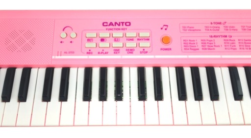 Keyboard posiada 37 klawiszy oraz mnóstwo przycisków z funkcjami, m.in regulację głośności, melodie demo, rytmy czy funkcję nagrywania.