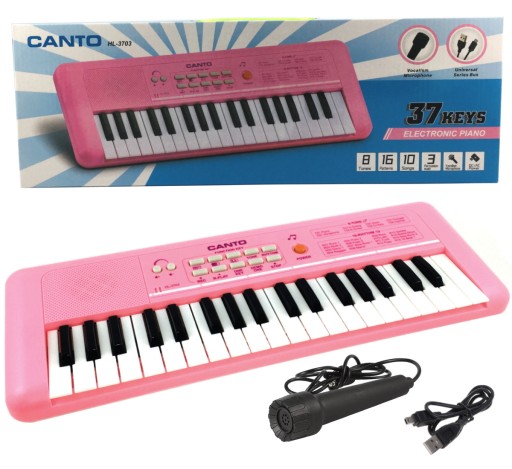 RÓŻOWY KEYBOARD MIKROFON ZASILANIE USB 37 KLAWISZY